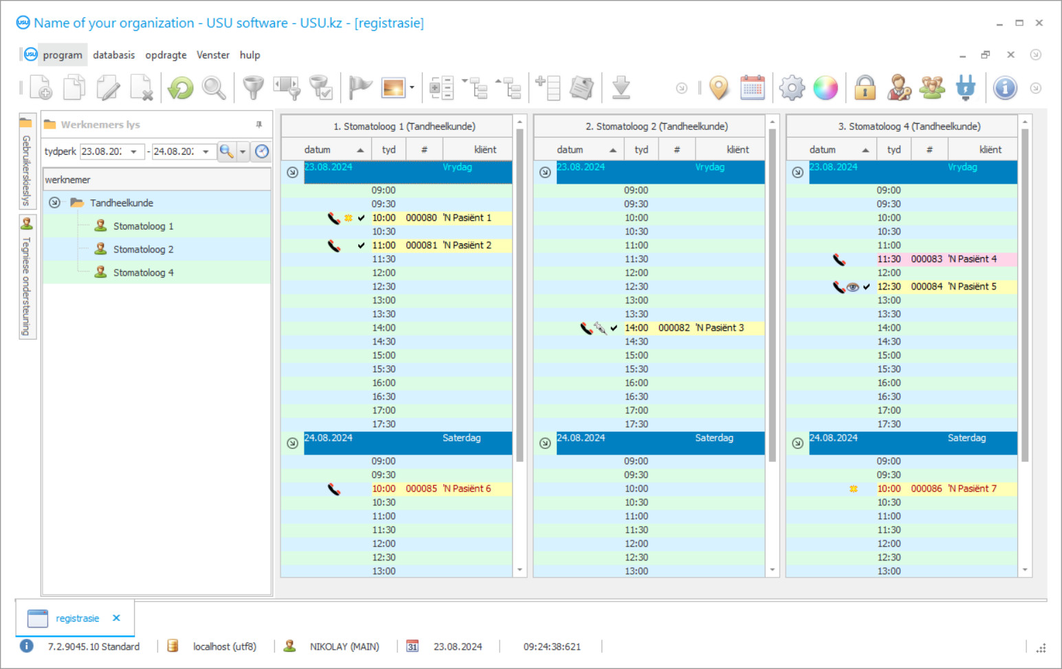 Die bekendstelling van die outomatiseringsprogram in 'n tandheelkundige kliniek is die belangrikste ding vir enige hoof van die organisasie! En ons help u professioneel met hierdie taak! Die USU-Soft tandheelkundige kliniek, 'n universele bestuursprogram, kan gebruik word om outomatisering in alle aspekte van aktiwiteite te implementeer. Met die program vir tandheelkundige kliniek kan elke tandarts die behandeling van hul pasiënte, hul bywoning en betaling beheer. Die boekhouding van die tandheelkundige kliniek in die USU-Soft-program word uitgevoer met die moontlikheid dat alle X-straalfoto's van kliënte in argiewe besigtig kan word. Ons program vir die tandheelkundige kliniekbestuur, wat 'n intuïtiewe spyskaart het, sal beslis 'n werklike helper in u instelling word! Die vooruitsigte van die programvensters kan deur elke gebruiker afsonderlik aangepas word met behulp van pragtige ontwerpsjablone. Die rekenaarprogram vir tandheelkundige klinieke stoor alle gebruikersinstellings outomaties. Die program vir tandheelkundige klinieke kan gratis op ons webwerf afgelaai word! Die enigste verskil is dat u in die demonstrasieweergawe van die program nie nuwe data in die gidse kan invoer nie. Ons het so 'n program van die tandheelkundige kliniek ontwikkel waarmee u met graagte u werksaamhede sal kan uitvoer! Geautomatiseer u werk met die USU-Soft tandheelkundige kliniekprogram, en sodoende kan u die hele organisasie outomatiseer!