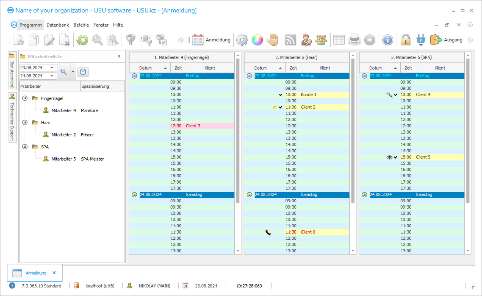 Ein erfolgreiches Geschäft aufzubauen bedeutet, wichtige Entscheidungen zu treffen. Sie benötigen eine Strategie, die Ihren Erfolg sicher aufbaut. Diese Strategie muss lediglich den Punkt enthalten, dessen Erfüllung äußerst wichtig ist. Es ist die Automatisierung des Geschäfts. Früher oder später wird es unmöglich, das Unternehmen in den Fortschritt zu führen, wenn die Verwaltung manuell erfolgt, da immer mehr Daten zu berücksichtigen sind. Nur das Programm kann den zunehmenden Informationsmengen entsprechen. Unser Erfahrungsschatz gibt uns das Recht, Ihnen einen guten Rat zu geben und Ihnen das beste Programm für einen Friseursalon anzubieten, das Ihnen helfen kann, die gewünschten Ziele und Träume zu erreichen! Manchmal müssen Sie sich nur in die richtige Richtung bewegen, egal wie schwierig es zu sein scheint. Sobald Sie begonnen haben, werden Sie sehen, wie Sie handeln müssen, und Sie können mit Sicherheit sagen: Dies ist der Weg!.