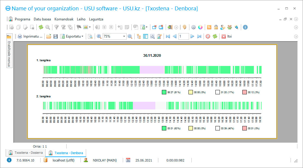 Langileak benetan lan egiten zueneko aldiak, alde egin zuenean, sagua mugitzen ez zenean eta teklatua erabiltzen ez zenean, debekatutako orriak ireki zirenean eta abar zehazten duen txostena finkapen metodo bikaina da. 2021ean kudeaketa prozedurak askoz ere errazagoak izango dira USU Software sistemarekin. Gure erabiltzaileen iritziak gune ofizialeko beste fitxa batean ikus ditzakezu.