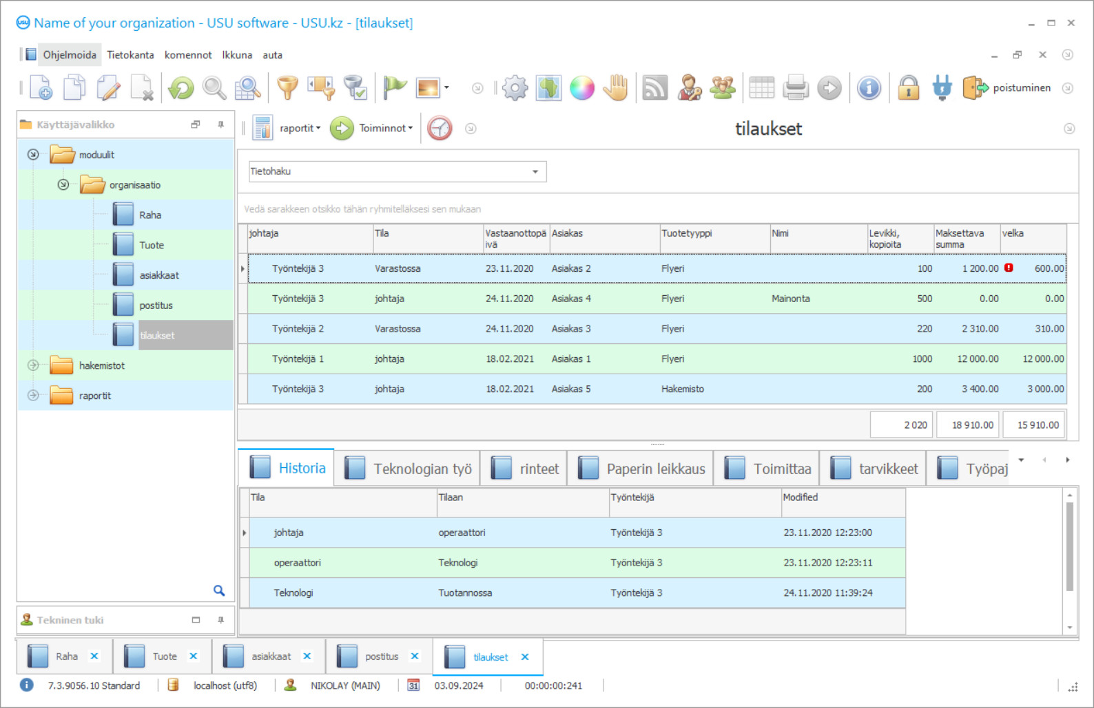 Suosituin ja kätevin tietokonepigrafiikkaohjelma on käyttäjien mukaan, jotka auttavat järjestämään toimintaa ja ratkaisuja yrityksessä, USU-ohjelmisto yritykseltä, joka on ansainnut sähköisen luottamusmerkin - USU-Soft. Tämä monitoiminen automaattinen ohjelma tarjoaa hallinnan toiminnan kaikkiin osa-alueisiin riippumatta yrityksen erityispiirteistä: varastosta, rahoituksesta, henkilöstöstä, kunnossapidosta, veroista jne. Polygrafiateollisuuden hallintaohjelmisto voi järjestää yrityksen johtamisen jatkuvasti, Tarkka ja läpinäkyvä valvonta yrityksen kaikista työprosesseista, jotka voidaan lisäksi suorittaa etänä, jos työpaikka joutuu poistumaan. Tätä varten tarvitset vain minkä tahansa kätevän mobiililaitteen, joka on kytketty Internetiin. Voidaan yksiselitteisesti sanoa, että niistä muunnelmista, jotka taittosuunnittelijan tulisi tietää polygraafiassa, USU-ohjelmisto on yksi parhaista. Pääominaisuuksien lisäksi sen etuna on myös helppo ja nopea työn aloittaminen sovelluksen kanssa, demokraattinen kustannus asennusta kohden, alhaiset tekniset vaatimukset sekä itsensä kehittämisen saatavuus ja työntekijöiden aloittamista koskevat vähimmäisvaatimukset työskentelevät siinä. Riippumatta siitä, kuinka monta osastoa ja sivukonttoria yrityksellä on, polygraafinen kirjanpito-ohjelma pystyy takaamaan keskitetyn valvonnan jokaisesta, antaen työntekijöille ja johdolle tietynasteisen liikkuvuuden ja tehokkuuden. Myös johtajat voivat aina hallita henkilöstöä kätevästi, koska ohjelma olettaa, että sen samanaikainen käyttö on rajoittamaton määrä työntekijöitä, jotka ovat yhteydessä paikalliseen verkkoon tai Internetiin. Samaan aikaan työntekijät, jotka pystyvät työskentelemään sujuvasti ja tiimityyppisesti samassa projektissa, jaetaan polygraphy-ohjelmassa yksilöllisillä oikeuksilla rekisteröintiä varten, jotka ilmaistaan kirjautumistunnuksina ja salasanoina. Johto voi arvioida tehtävien suorittamista taittosuunnittelijoiden ja muiden työntekijöiden yhteydessä sukunimen mukaan, mahdollisuuden tietää volyymit, ja heti matkan varrella veloittaa heiltä palkan tehdyn työn analyysin perusteella. Kätevästi, melkein kaikki palkoihin liittyvät laskelmat tai suoritettujen palvelujen kustannuslaskelmat, polygraafialaskentaohjelma suorittaa itsenäisesti, optimoimalla työnkulun ja vapauttamalla henkilöstön suorittamaan tärkeämpiä ja konkreettisempia tehtäviä. Yleensä automaation myönteinen vaikutus perustuu siihen, että inhimillisen tekijän käyttö tehtävissä tehtävissä korvataan melkein kaikilla nykyaikaisilla laitteilla. Helppo synkronointi samalla polygrafiatekniikalla mahdollistaa tehtävien asettamisen sen suorittamista varten, vaikka käynnistys viivästyisi. Polygrafiateollisuuden hallintaohjelmistolla suoritettu automaatio mahdollistaa työskentelyn keskeytyksettä ja tehokkaimman tuloksen. Sen helppokäyttöisyys on ensisijaisesti siinä, että sillä on toiminnallisella kuormituksella eniten kevyt käyttöliittymä, joka on jaettu vain kolmeen osaan: moduulit, raportit ja hakemistot, joista kukin on jaettu muihin luokkiin, jotka tekevät kirjanpidosta mukavan. Moduulit-osaston nimikkeistössä jokaiselle kulutustavaralle ja vastaanotetuille tilauksille on luotava uusi tili, joka tallentaa tärkeät tiedot tästä kirjanpitoluokasta ottaen huomioon sen erityispiirteet ja alustavat kustannusarviot. Tällaisista tiedoista tulee myöhemmin polygrafiateollisuuden laskentaohjelman tärkein kirjanpitotoiminta, joten on äärimmäisen tärkeää tietää, mitkä tarvittavat toimet ovat niiden oikea-aikainen ja oikea ylläpito. Riippumatta siitä, mitä laskelmia haluat suorittaa, kukin niistä voidaan suorittaa Raportit-osiossa, joka pystyy tehokkaasti keräämään tietoja ja analysoimaan niitä laskemaan indikaattorit valitsemallesi toimintalinjalle. Kaikki vastaanotetut laskelmat voidaan näyttää kaavioina, taulukoina ja kaavioina, mikä tekee niistä ymmärrettävämpiä ja helpommin tarkasteltavissa johdon ja taittosuunnittelijan, jonka tulisi tietää työnsä tuloksista.