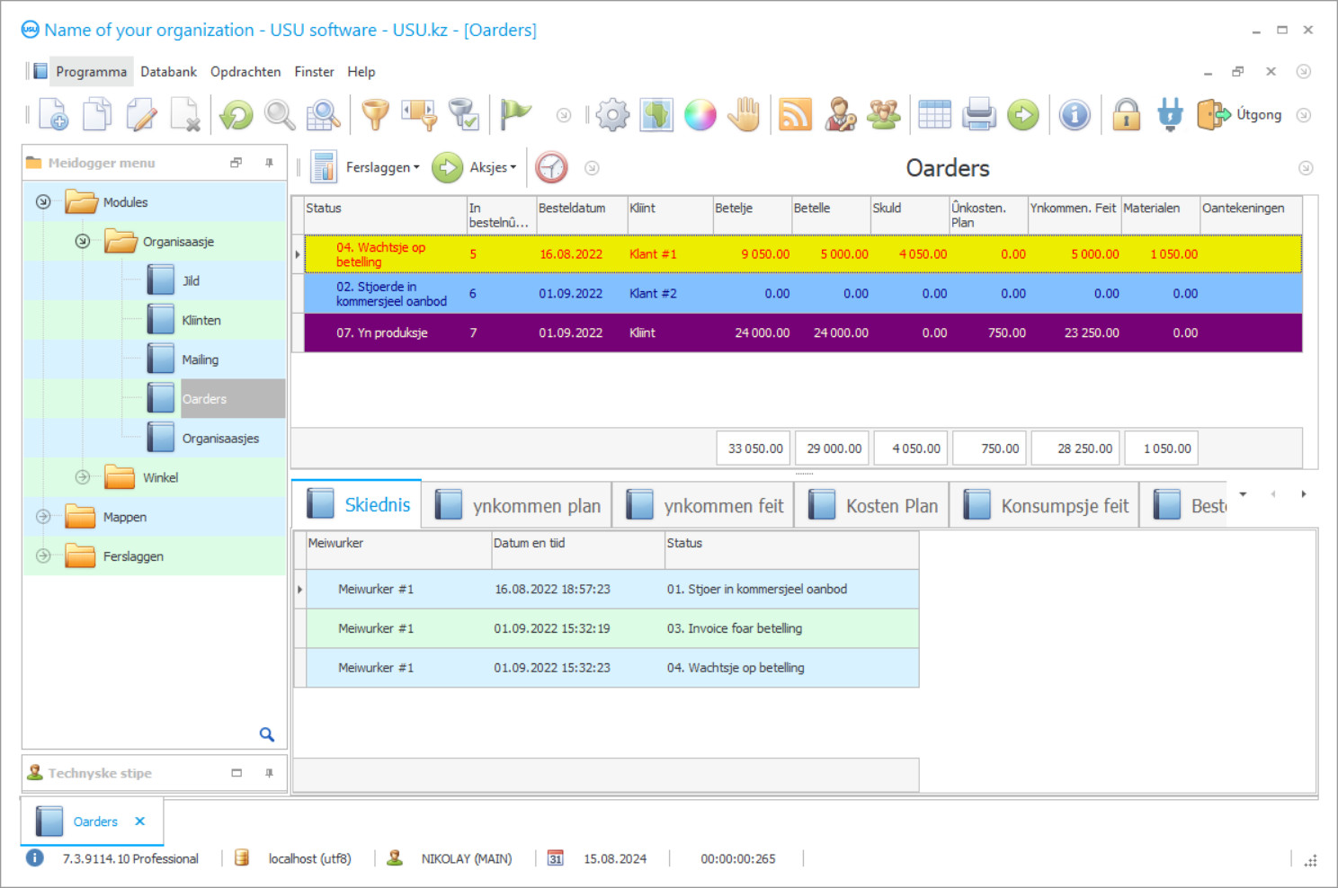 Klantorderbehear jouwt ta foar mear detaillearre en effisjinte kontrôle fan elke bestelling en it proses fan ynteraksje mei elke klant, ôfhinklik fan 'e spesifiken fan oarders en klantfoarkarren. Oanmeitsjen en ûnderhâld fan in database mei unbeheinde mooglikheden foar it opslaan en ferwurkjen fan gegevens. Warehousing wurdt fersoarge troch bestjoeringsbehearbehear, klantbehear, ynventarisaasje, barcoding, analytyske beoardieling fan 'e effisjinsje fan it pakhús. Mei help fan planning en foarsizzing, budzjet útfiere. Alle opsjes binne rjochte en rjochte op de foechhawwende en betochtsume ûntwikkeling fan 'e aktiviteiten fan it bedriuw, mei rekkening mei risiko's, it mooglike nivo fan winst, ensfh. D'r is in herinneringsopsje wêrtroch jo wurktaken op tiid kinne foltôgje, in wurkdei kinne plannen en net misse wichtige barrens. Mailing yn ferskate formaten sil jo in nauwe kontakt hâlde mei de klant.