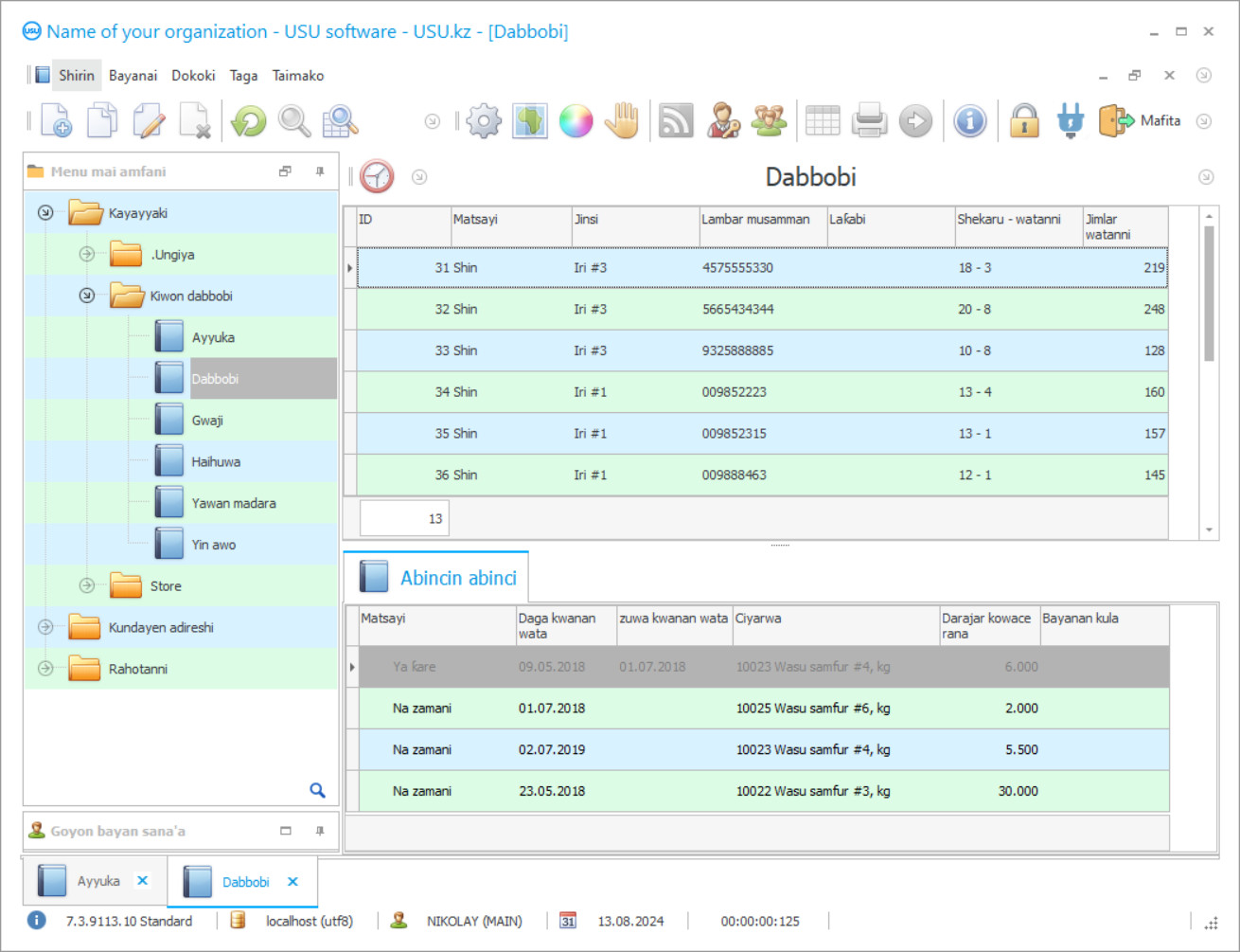 A cikin tsarin 'Rahotanni', yana yiwuwa a zana lissafin bincike na farko, tare da taimakon abin da zai yiwu a bi hasashe na ci gaba don nan gaba. A cikin wani shiri na atomatik, zaku iya samun kowane rikodin a cikin sakan ta hanyar ƙa'idodi da yawa, godiya ga tsarin bincike mai wayo. Don aiwatar da ayyukan haɗin gwiwa a cikin tsarin aikace-aikacen, dole ne a haɗa manoma da hanyar sadarwa guda ɗaya na gida ko Intanet. USU Software, ayyuka da yawa za a iya saita su, gami da lura da rabon dabbobi a gonar da jadawalin ciyarwar su. An shigar da wani shiri mai sauƙi daga nesa kuma yana gudana daga gajerar hanya akan tebur, wanda zai ba ku damar fara aikinku da sauri. Ingantaccen haɗin kai tare da tushen abokin ciniki ana samar dashi ta hanyar aiki tare da USU Software tare da intanet. Ana iya tsara kowane takardu ta amfani da tambari da bayanan kamfanin ku, waɗanda aka tattauna tukunna tare da masu shirye-shiryen mu. A sauƙaƙe yana hulɗa tare da sauran shirye-shiryen lissafin gonar, don haka ba matsala don canja fayiloli daban-daban na lantarki. Ga kowane abokin cinikin kamfaninmu, akwai tsarin demo na kyauta na tsarin shigarwa, iyakantacce cikin aiki, wanda zaka iya sauke kanka daga shafin. Godiya ga kasancewar asusu na sirri ga manoma, zai zama abu mai sauki ne sosai wajan bin kadin ayyukansu da kuma kirga albashin bisa lamuran wadannan alamun.