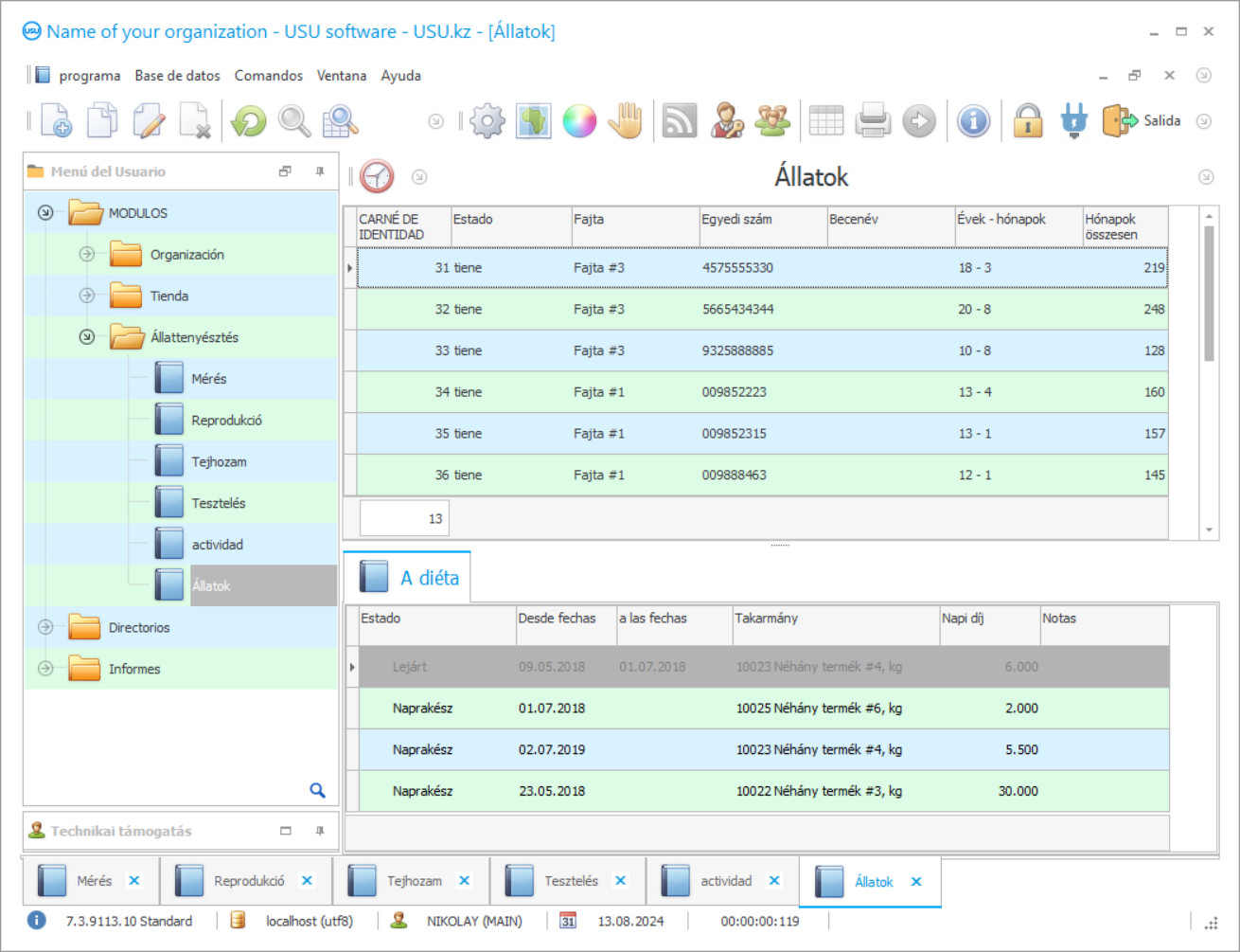 A ’Jelentések’ modulban lehetőség van elsődleges analitikus könyvelés összeállítására, amelynek segítségével nyomon lehet követni a közeljövőre vonatkozó előrejelzéseket a fejlesztésben. Egy automatizált programban pillanatok alatt bármilyen kritériumot találhat meg, több kritérium alapján, az intelligens keresőrendszernek köszönhetően. A pályázat keretében közös tevékenységek végzéséhez a gazdáknak egyetlen helyi hálózathoz vagy az internethez kell kapcsolódniuk. USU szoftver, számos funkció konfigurálható, beleértve a farmon lévő állatok arányának és etetési ütemezésének figyelemmel kísérését. Egy egyszerű program telepítése távolról történik, és az asztalon található parancsikonból fut, amely lehetővé teszi a munka gyors megkezdését. A vevőkörrel való jobb összeköttetést az USU szoftver és az internet szinkronizálása biztosítja. Bármilyen dokumentáció elkészíthető cége logója és adatai felhasználásával, amelyet előzetesen megbeszélnek programozóinkkal. Könnyen kölcsönhatásba lép a gazdaság egyéb könyvelési programjaival, így nem okoz gondot a különböző elektronikus fájlok átvitele. Cégünk minden potenciális ügyfele számára elérhető a rendszer telepítésének ingyenes, korlátozott funkcionalitású demo verziója, amelyet könnyedén letölthet a webhelyről. A gazdálkodók személyes számláinak köszönhetően sokkal könnyebb követni tevékenységüket és kiszámítani a béreket ezek alapján a mutatók alapján.