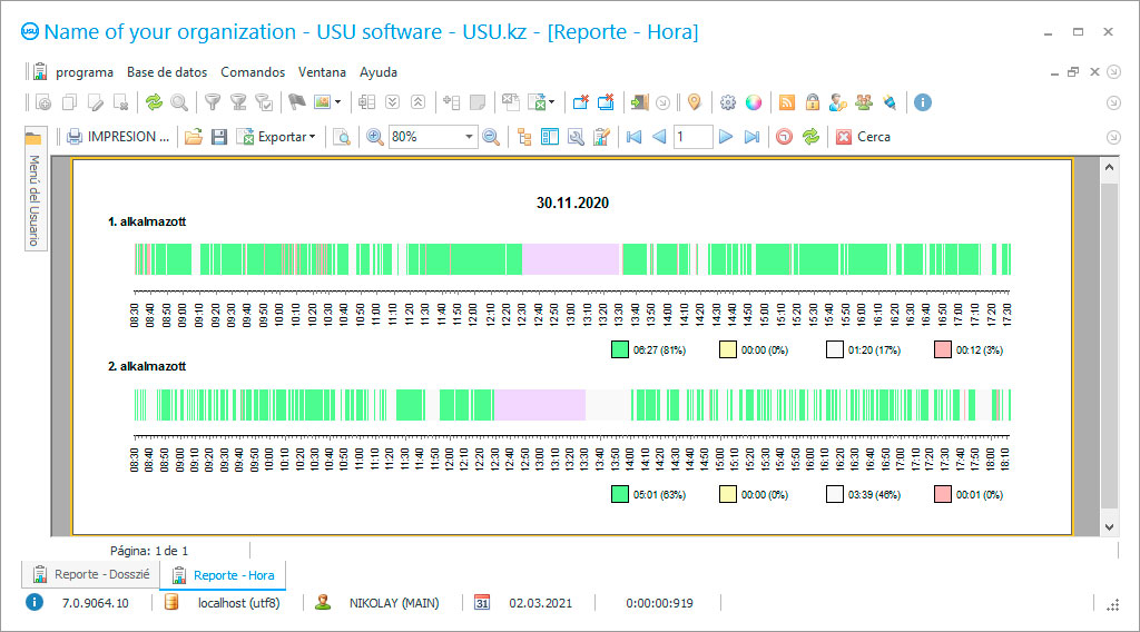 Jelentéskártya, amely részletezi azokat az időszakokat, amikor az alkalmazott ténylegesen dolgozott, mikor távozott, amikor az egér nem mozdult és a billentyűzetet nem használták, amikor tiltott oldalakat nyitottak, stb. Remek rögzítési módszer. Az irányítási eljárások 2021-ben sokkal könnyebbé válnak az USU Software rendszerrel. Felhasználóink véleményét a hivatalos webhely külön fülén láthatja.