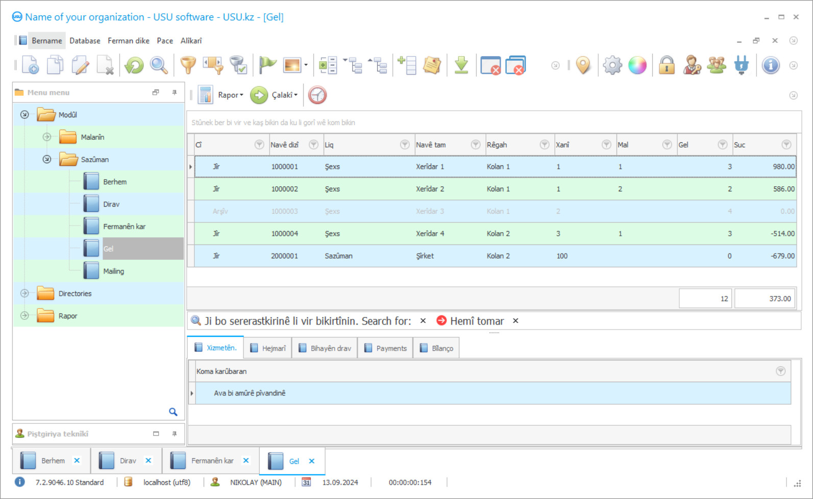 Dîmenek wêneyek nermalava xebitandinê ye. Ji wê hûn dikarin tavilê fêm bikin ka pergalek CRM çawa xuya dike. Me pêwendiyek pencereyê bi piştgirîya sêwirana UX/UI bicîh kiriye. Ev tê vê wateyê ku navrûya bikarhêner li ser bingeha ezmûna bikarhêner a salan e. Her kiryar tam li cîhê ku pêkanîna wê herî hêsan e cîh digire. Bi saya nêzîkatiyek wusa jêhatî, hilberîna xebata we dê herî zêde be. Li ser wêneya piçûk bikirtînin da ku dîmenê bi tevahî mezinahî vekin.