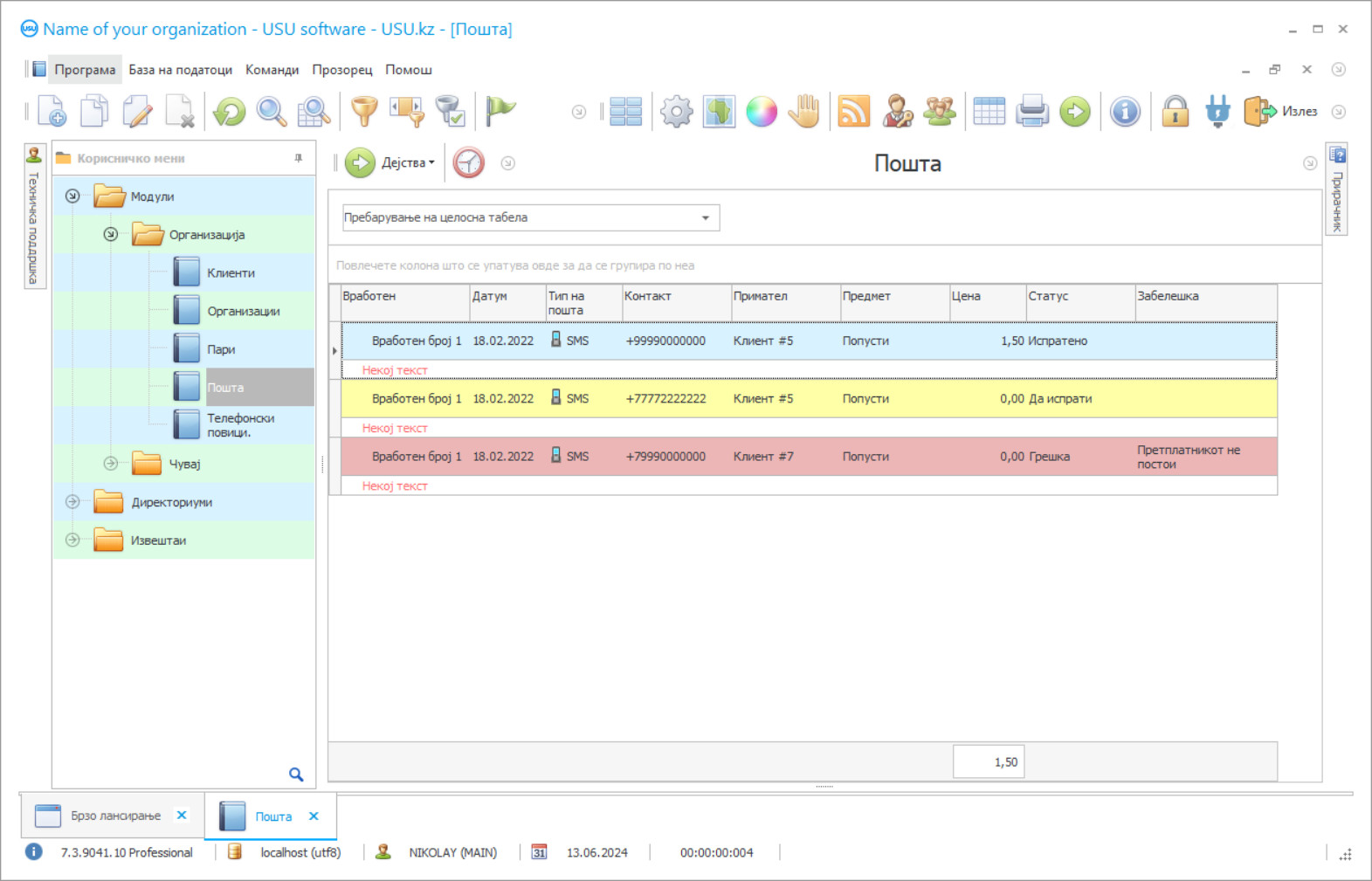 Процесот на инсталација на нашето сеопфатно софтверско решение нема да ви одземе многу време и напор. Ние ќе ви помогнеме да ја инсталирате програмата за испраќање, благодарение на што процесот на работа ќе започне веднаш. И ние секако сме заинтересирани за вашите повратни информации за комплексот, кои можете лично да ги тестирате. Ова е многу важно за нашето претпријатие, што значи дека не треба да ја занемариме интеракцијата со персоналот на Универзалниот сметководствен систем. Вие самите можете да собирате повратни информации од потрошувачите, бидејќи ви ја даваме оваа можност користејќи ја програмата за билтен. Ќе можете да испраќате СМС пораки до неодамна опслужените клиенти со цел да се распрашате колку се задоволни. Така, можно е да се одреди нивото на среќа на потрошувачите и со тоа да се зголеми чекор по чекор и квалитативно. Ние секогаш се стремиме да обезбедиме дека компанијата што презема ќе постигне значителен успех на натпреварот. Затоа е создаден овој развој.