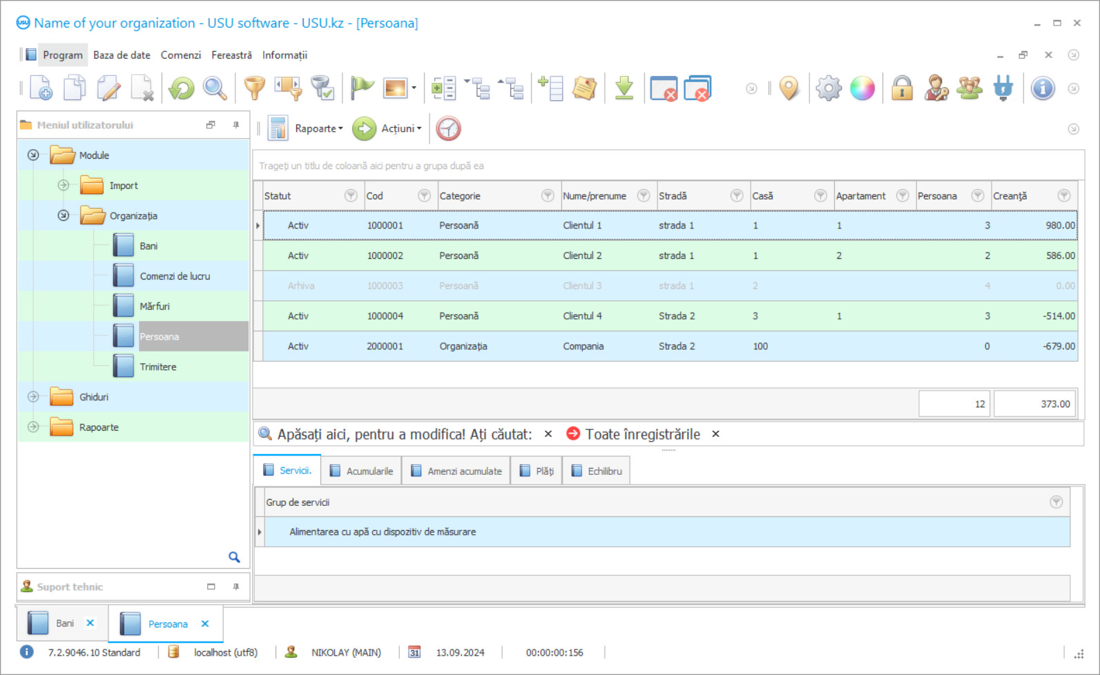 O interfață ușor de utilizat și un aspect vizual al informațiilor permit chiar și utilizatorilor nu prea încrezători să păstreze înregistrări în ea. Tot conținutul programului de automatizare și optimizare a controlului calității și a managementului analizei este disponibil conducerii întreprinderii. Programul contabil al calculelor serviciilor comunale are o configurație flexibilă și vă permite să instalați servicii suplimentare pentru a rezolva problemele noi care apar în timp. Sistemul informațional, care stă la baza programului avansat de automatizare a supravegherii personalului și a analizei calității, este o colecție de date - toate informațiile despre abonații care locuiesc pe teritoriul subordonat întreprinderii: numele, zona locuințelor, numărul de rezidenți, contactele , lista serviciilor, lista dispozitivelor de măsurare și descrierea acestora. Sunt indicate, de asemenea, caracteristicile unei clădiri rezidențiale și o listă de locuințe comune și echipamente comunale, deoarece programul de contabilitate și gestionare a calculului serviciilor comunale trebuie să ia în considerare toate nuanțele la calcularea costului consumului de resurse.