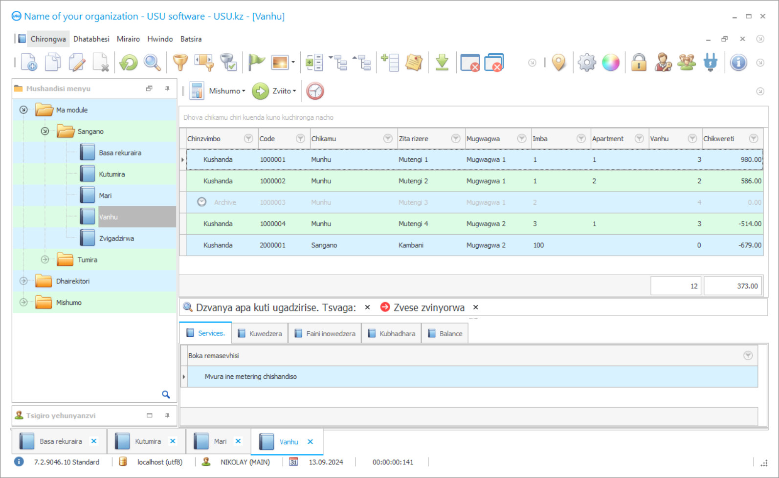 Iyo USU-Soft sisitimu yemunharaunda mabasa ekuverenga inogadzirisa dambudziko rekuchaja chaiko kune avo masevhisi pamwedzi. Iyo software inobhadharisa macommunity services kukarukureta ine zvinhu zvakawanda. Kugadzira mamiriro ekugara akasununguka, huwandu hweshumiro dzinopihwa huwandu hwevanhu hunosanganisira runyorwa rurefu rwemabasa anoitirwa kugadzirisa zvivakwa zvekugara nenzvimbo dzakabatana, uye runyorwa rurefu zvakaenzana rwezvinhu zvinodyiwa nevagari sekondi yega yega. Sevhisi yega yega, sosi yega yega ine zviratidzo zvayo uye nzira dzekuverenga zviyero zvemunharaunda, zvinoenderana nemamiriro ekugara, mashandisirwo emitero uye nemitero yakasimbiswa. Nezvose izvi, muridzi wemba wega wega ane runyorwa rwake rwemidziyo yakaiswa mufurati, iyo inofanirwawo kutarisirwa kana uchiverenga zviyero zvemunharaunda. Mune yakatsanangurwa mamiriro, rubatsiro runogona chete kupihwa neiyo software yekuverenga kweyemunharaunda masevhisi kubva kukambani USU. Iko kunyorera kwekuverenga kweyekudyidzana masevhisi kunopa dzakasiyana sarudzo dzekubhadhara, zvinoenderana nekuti paine yakajairwa imba metering chishandiso, kunyangwe paine metering michina mumafurati, chii nzvimbo inogarwa nevagari uye kuti vanhu vangani varipo. Bvumiranai - hazvibviri kunyatso fungisisa izvi zvese zvinhu panguva imwechete kunyangwe kune timu yese yehunyanzvi.