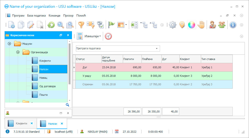 Снимак екрана је фотографија софтвера који ради. Из њега можете одмах разумети како изгледа ЦРМ систем. Имплементирали смо прозорски интерфејс са подршком за УКС/УИ дизајн. То значи да је кориснички интерфејс заснован на дугогодишњем корисничком искуству. Свака радња се налази тачно тамо где је најпогодније извршити. Захваљујући тако компетентном приступу, ваша радна продуктивност ће бити максимална. Кликните на малу слику да бисте отворили снимак екрана у пуној величини.