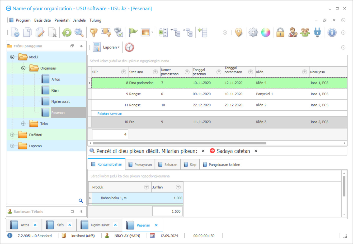 Potret layar mangrupikeun poto parangkat lunak anu dijalankeun. Ti dinya anjeun tiasa langsung ngartos kumaha sistem CRM. Kami parantos ngalaksanakeun antarmuka jandela kalayan dukungan pikeun desain UX / UI. Ieu ngandung harti yén antarbeungeut pamaké dumasar kana taun pangalaman pamaké. Tiap aksi lokasina persis dimana eta paling merenah pikeun ngalakukeunana. Hatur nuhun kana pendekatan anu kompeten sapertos kitu, produktivitas kerja anjeun bakal maksimal. Klik dina gambar leutik pikeun muka screenshot dina ukuran pinuh.