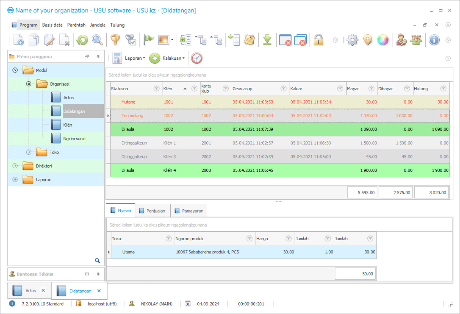 Upami anjeun ngajalankeun klub, anjeun peryogi program khusus pikeun ngajalankeunana. Parangkat lunak sapertos kitu tiasa dipésér ti spesialis Perangkat Lunak USU. Sadaya divisi struktural anjeun tiasa nyambung nganggo Internét atanapi jaringan daérah lokal. Ieu merenah pisan, sabab sadaya jalma anu tanggung jawab dina lembaga anjeun bakal tiasa aksés gampang kana bahan inpormasi dasar. Pakeman basa anu nganggo profil anu pang lega tiasa ngabantosan anjeun pikeun nyegah masalah pamahaman. Ukur masang perangkat lunak manajemén klub kami dina komputer pribadi anjeun. Masing-masing padamel anjeun bakal gaduh akun pribadi anu dipikagaduh ku aranjeunna. Dina kerangka na, bakal mungkin pikeun ngaropea konfigurasi sareng berinteraksi sareng bahan inpormasi sakumaha anu dipikahoyong ku spesialis.