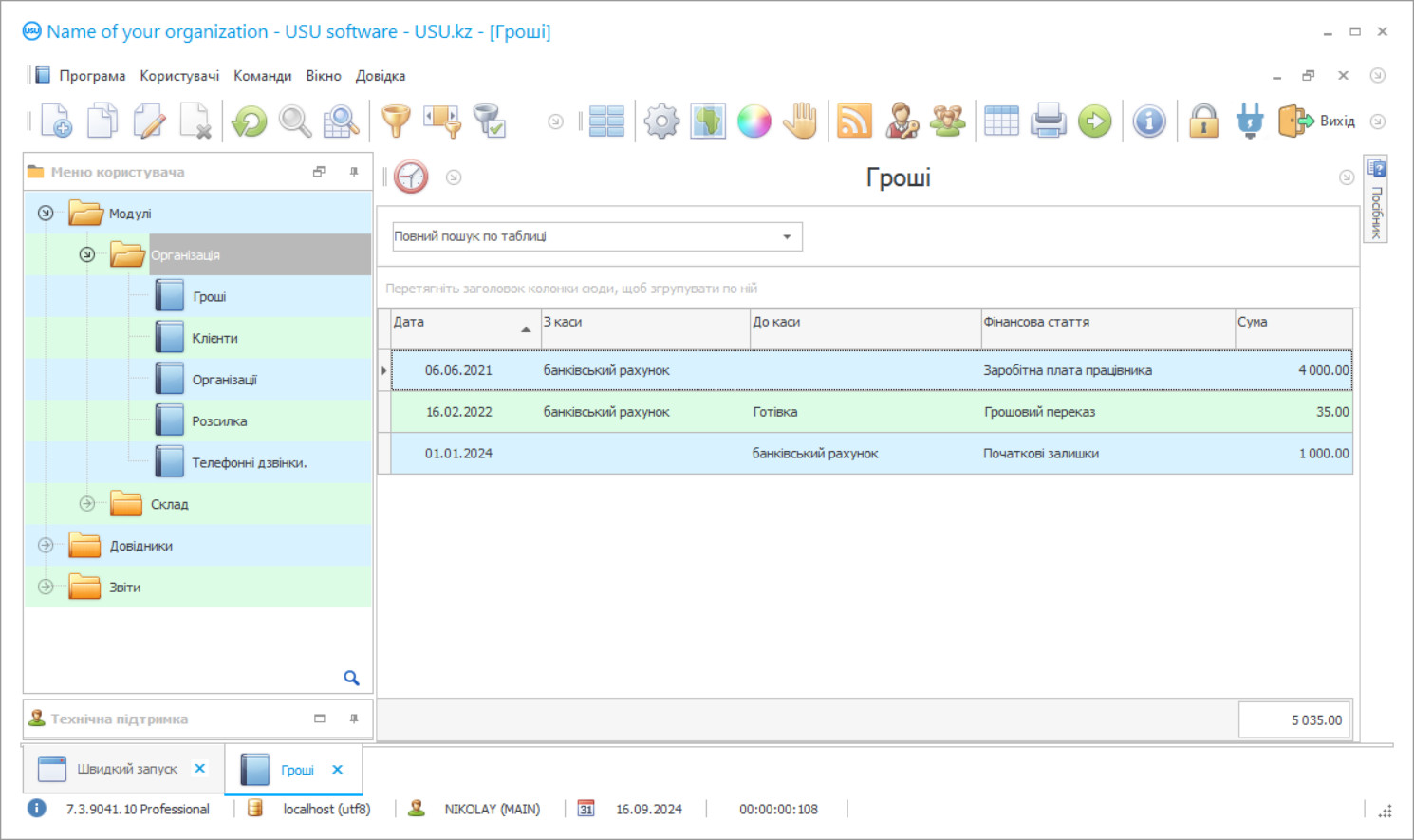 Система ведення грошового обліку дає змогу формувати та друкувати фінансові документи з метою внутрішнього фінансового контролю діяльності організації.