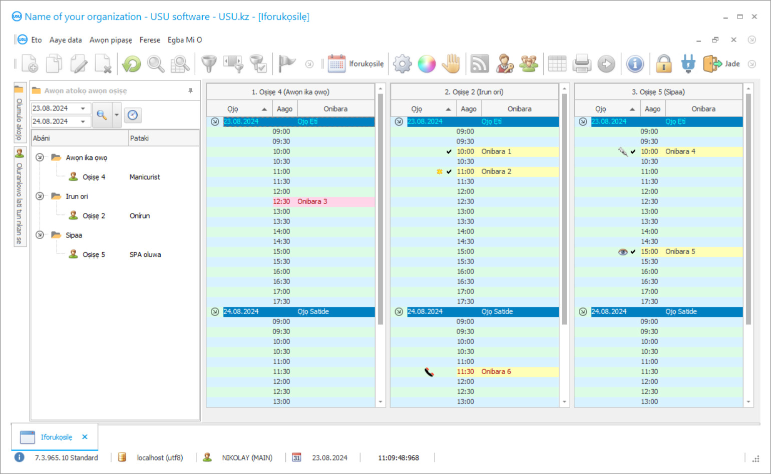 Ohun elo adaṣe pataki kan lati lo ninu ile iṣọ irun yoo jẹ ohun ti o dara julọ ati irọrun oluranlọwọ aibikita fun gbogbo awọn oṣiṣẹ ni ile iṣọ irun. Ṣeun si eto iṣowo irun ori adaṣe, o ṣee ṣe lati je ki o ṣeto ilana iṣẹ ni ile iṣọ irun. O le gbagbe nipa iwe-kikọ alaidun lẹẹkan ati fun gbogbo. Iṣiro Afowoyi gba igbiyanju pupọ ati akoko. Lati isisiyi lọ iwọ kii yoo lo awọn wakati ni ile ifi nkan pamosi ti o n wa iwe pataki ti o ba fi sori ẹrọ eto USU-Soft ti ile iṣọ irun ori. Ni afikun, o ko le ṣe aniyàn mọ nipa otitọ pe diẹ ninu iwe ti bajẹ tabi sọnu sọnu. Eto amọja digitizes gbogbo iwe, fifi sii sinu ibi-ipamọ data itanna pataki kan, iraye si eyiti o wa ni igbekele muna ati ikọkọ. Eto ti ile iṣọ irun ori gba ọ laaye lati fipamọ akoko iṣẹ ati agbara ti awọn oṣiṣẹ ni ọna nla. O le bayi lo awọn iṣeju diẹ diẹ ninu wiwa alaye pataki. Ati pe kini o wa lati wa, ni otitọ? O ti to lati tẹ awọn ibẹrẹ ti alabara ti o n wa ni laini wiwa tabi awọn ọrọ meji lati gbolohun bọtini lati gba gbogbo data pataki lori iboju atẹle ni iṣẹju diẹ. Eto ti ile iṣọ irun-ori lati USU jẹ ọja tuntun ti awọn oludagbasoke ti o dara julọ wa, ti o ṣakoso lati ṣẹda didara ga julọ ati eto ti o gbajumọ. Eto iṣowo adaṣe adaṣe adaṣe adaṣe jẹ ohun akiyesi kii ṣe ọpẹ nikan si multifunctionality ati ibaramu rẹ, ṣugbọn tun ọpẹ si ọna ti o rọrun julọ ati irọrun ti išišẹ. Awọn amọja wa lo ọna ẹni kọọkan si alabara kọọkan, ni akiyesi gbogbo awọn ero ati awọn ifẹ ti olumulo eyiti o jẹ 100% ti a ṣe imuse ninu eto iṣowo irun-ori. Eyi gba wọn laaye lati ṣẹda eto alailẹgbẹ l’otitọ ti o jẹ pipe ni eyikeyi agbari, ati ile iṣọ irun-ori kii ṣe iyatọ. Eto adaṣe lati ile-iṣẹ wa jẹ oluranlọwọ ti o dara julọ si oniṣiro, oluṣakoso ati alakoso. Eto USU-Soft ṣiṣẹ adaṣe iru awọn ilana bii iṣiro, iroyin, iṣakoso eniyan ati gbogbo ile iṣọ irun. O ni anfani lati ṣakoso ile iṣọ irun ni awọn wakati 24 ni ọjọ kan laisi fi ile rẹ silẹ. Igbasilẹ awọn alabara si ọpọlọpọ awọn amoye di adaṣe. Awọn ohun elo inawo ti wa ni kikọ laifọwọyi lakoko iṣẹ ti awọn alamọja.